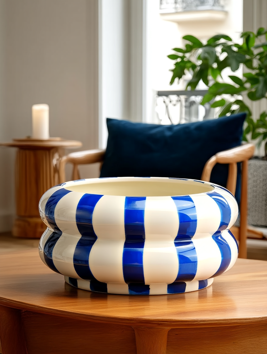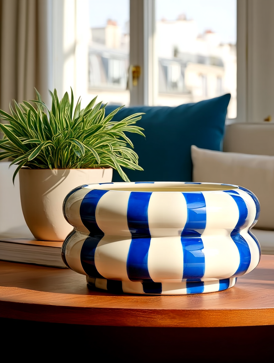 💙 Sublimez vos plantes avec ce cache-pot en céramique rayé au style méditerranéen chic