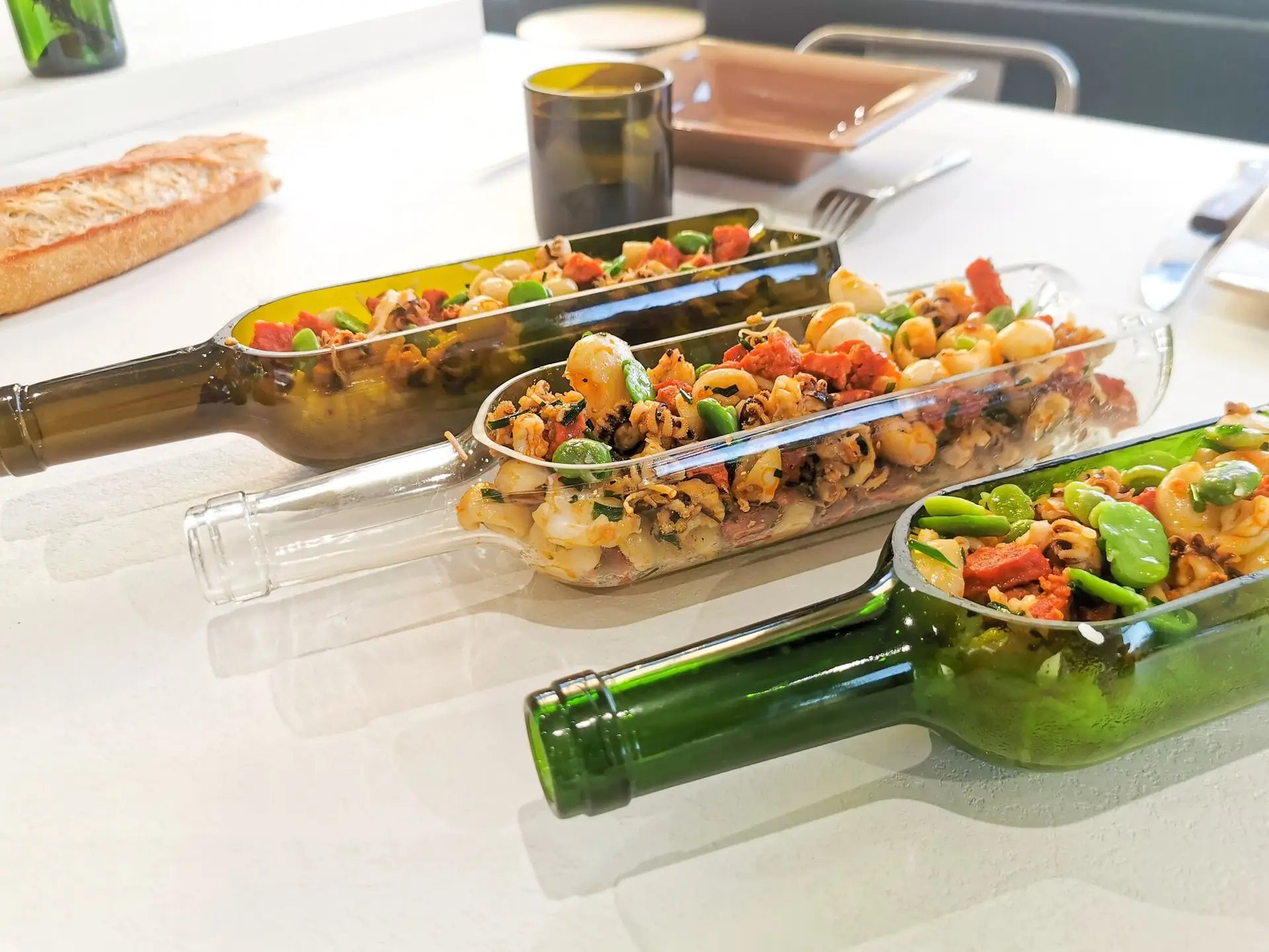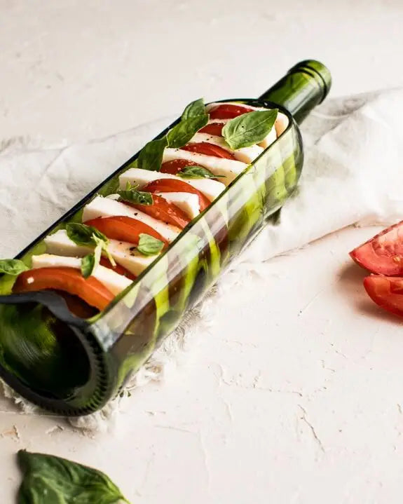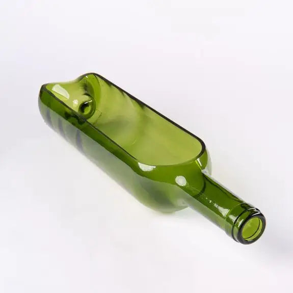Le Plateau Apéritif en Verre Recyclé transforme bouteilles de vin 75 cl en pièces d'art fonctionnelles élégantes 🍷♻️ Découpé artisanalement dans le sens de la longueur, ce plateau révèle lignes fluides et courbes naturelles du verre vert préservant identité originale de la bouteille. Parfait pour sublimer tapas, amuse-bouches, fromages ou fruits secs, il s'intègre harmonieusement dans intérieurs contemporains ou classiques. Polyvalent, il sert aussi de vide-poches, support décoratif ou élément central sur table. Alliant savoir-faire artisanal, démarche upcycling durable et esthétique raffinée, ce plateau unique est cadeau parfait pour amateurs design écoresponsable et art de la table original.